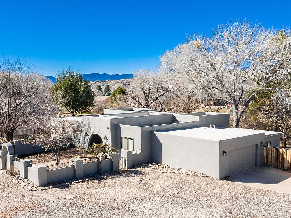 Welcome to style and elegance, only minutes from Sedona, tucked privately into the adorable gated community of Oak Creek Valley. Enter your private walled courtyard into the graceful and thoughtfully remodeled 2396 square foot home. Style and elegance greet you in all aspects of this beautifully appointed home. Living room presents itself with custom beams and direct line of sight through glass sliders and open patios with an incredible entertaining area and direct access to Spring Creek. Decadent kitchen with custom stainless steel countertops, under counter mounted country style sink, stainless steel appliances, soft close cabinet doors and soft close drawers with under cabinet lighting. Breakfast bar and island have stunning custom light color concrete countertops, ..continued...