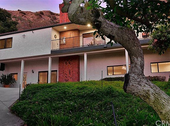 Delight in stunning city views from this 4900+ square foot, custom built, 4 bedroom, 4 bath, North Glendora, cul-de-sac home. With only two owners, this home has been immaculately maintained, and has many top of the line, upgraded features. The top level has two en suite bedrooms, the master bedroom featuring a large cedar lined walk in closet and sitting area, and a master bath with a sunken tub, separate shower and dual sinks. There are three fireplaces in the home, custom travertine floors, a formal living room, family room, wet bar and formal dining room. The kitchen has ample storage, granite counters, and high end appliances, including a state of the art microwave. On the lower level there are two more bedrooms, a hot tub room with a large sauna and enclosed lanai, a full bathroom, workout or bonus room, huge game/media room w/high end speaker system and 2nd wet bar & refrigerator, and storage galore!! Both floors have direct exterior access! Gorgeous, hand made, mosaic Napa Valley mural adorns the wall at the top of the driveway. This home is truly a one of a kind, entertainer's delight!! Enjoy a relaxing evening or begin your day, taking in the breathtaking view from the balcony that expands nearly the entire length of the home. This 2.4 acre, triangular shaped, hillside property offers privacy and seclusion, award winning Glendora Schools and convenient retail and freeway access. You must see this home to fully appreciate all it's unique and custom features!