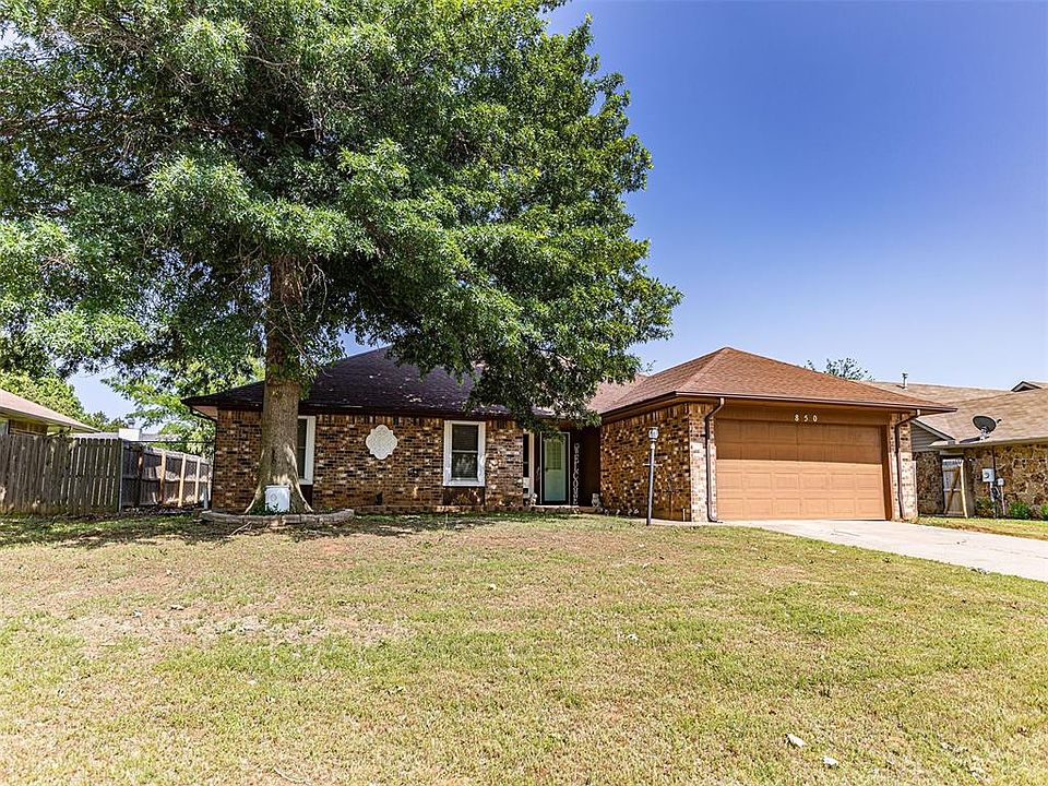 Super cute home located in a nice established neighborhood just east of Choctaw High School! Large living area with several built-ins and a cozy fireplace that opens into dining and kitchen area! Kitchen has solid surface countertops, pantry, and breakfast bar. HUGE covered patio and backyard that is perfect for entertaining!