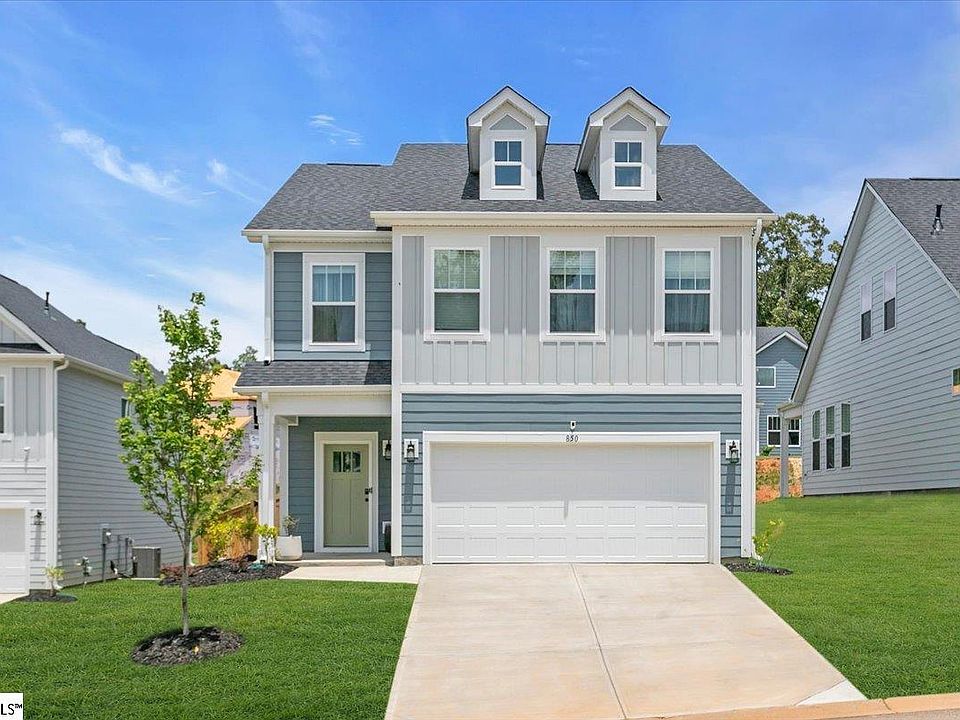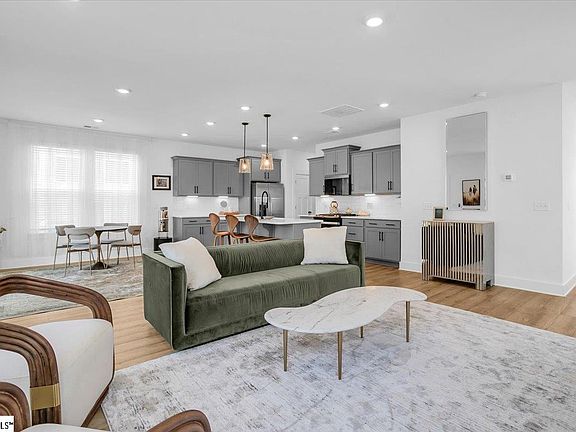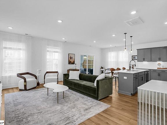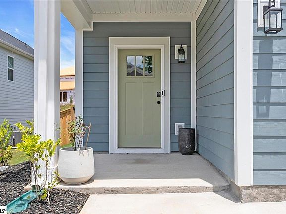 Better than new! Built in 2024 and loaded with after market upgrades, this lightly lived in Jasmine model home is a brand new design featuring 2109 square feet of functional living space. Craftsman style home with covered front porch, two car garage w/ professionally installed epoxy coating, Smart Home Technology Package for remote entry/light/temp control, hardwired front/rear Ring cameras, whole house water purification system, recessed lighting, Shaw LVP flooring throughout, covered rear porch with shear drapes, manicured gardens and lawn, and completely fenced yard. The kitchen features a center island with sink for extra prep space and additional seating along with beautiful grey cabinetry and white Quartz countertops, tile backsplash, under cabinet lighting and stainless steel appliances including a gas range/oven and built in microwave. Off the breakfast area there is a covered back porch which overlooks your backyard. Up the Oak staircase you will come to the Primary Suite which features double sinks, generous walk in closet and beautiful tiled shower with built in seat. The loft space is perfect for that extra living space or even a home office space. Two additional bedrooms, full bath and laundry room complete the second floor. *Custom wardrobe built-ins for ultimate dressing capabilities. Just minutes to Downtown Spartanburg, Route 85, all shopping (Costco, Lowes, Publix, etc), nature trails, botanical gardens, Tyger River, and golf courses. Pleasant Falls is a vibrant, new community located in the thriving town of Moore, SC. Embrace the comfort and convenience of thoughtfully designed, craftsman-style exteriors, while enjoying the ease of low-maintenance living that allows you to focus on what truly matters. Nestled amidst natural beauty, Pleasant Falls offers easy access to the scenic Tyger River and tree-lined homesites, providing a serene and peaceful atmosphere. Benefit from the convenience of a prime location, with proximity to Spartanburg District 6 schools (including Dorman High School), GSP International Airport, and major transportation corridors. Experience the best of both worlds at Pleasant Falls – a community that combines modern living with natural beauty and convenience.