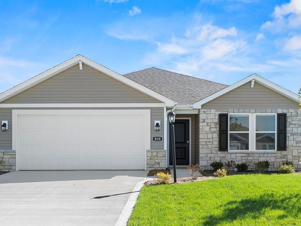 Welcome to 850 Pleasant Hill Place, a thoughtfully designed ranch residence that combines modern comfort with functional living in a quiet community in Southwest Fort Wayne. Homesite featuring a private pond view! The inviting open layout make it both practical and welcoming. Every inch of the kitchen has been carefully curated including stainless steel appliances, elkins grey cabinets, frozen ice countertops, low maintenance LVP, spacious island with bar seating, and a large corner pantry. A cozy yet open living area and casual dining space are nearby for convenience. The primary bedroom features a star studded ensuite walk-in closet and bath with cultured white marble dual sink vanity and bianco carrara tile walk-in shower. Three additional well-sized bedrooms are designed for privacy and relaxation. A convenient and large laundry room makes laundry day a breeze. With its elegant finishes and efficient layout, this home is ready to meet your need today!