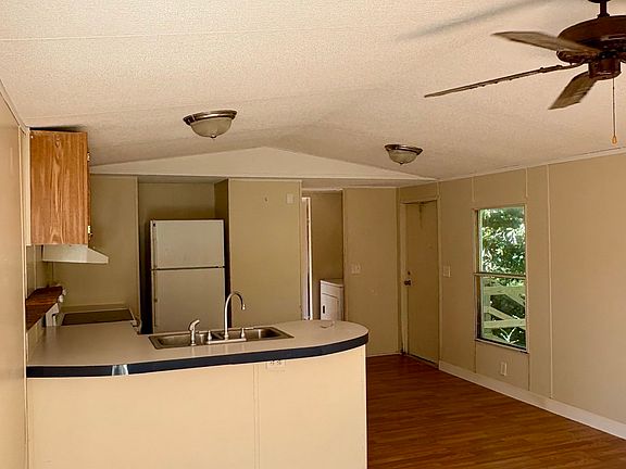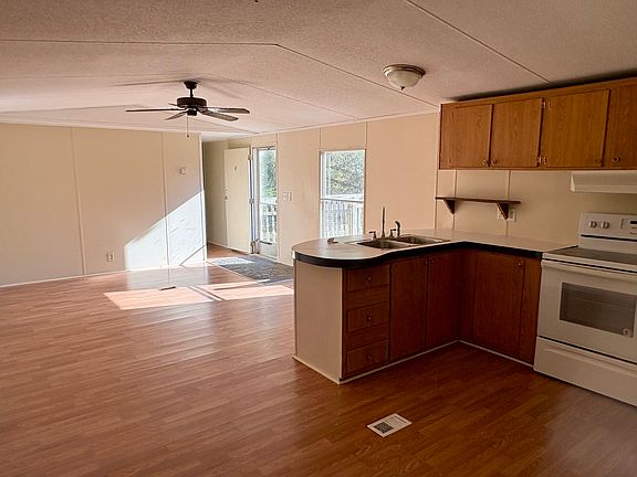Spacious double wide trailer featuring three bedrooms and two full bathrooms, central heating and cooling, metal roof, large front porch, small backdoor step and a large primary bedroom with walk-in closet. Recently renovated with durable modern materials and set on a large lot. Indoor/outdoor Storage shed included.
