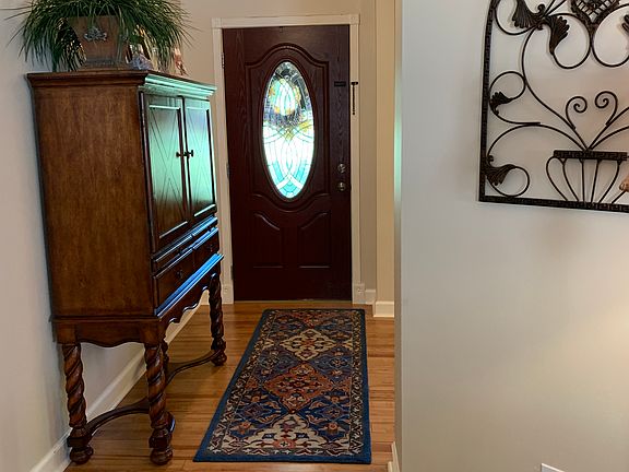 One story, all brick home in highly sought-after Clover School district. 3-acre, wooded lot within 2.5 miles to desirable Oakridge Elementary and Middle Schools! Covered front porch entry flanked with swings opens to foyer and spacious dining room. Family room features a brick, wood-burning fireplace open to the kitchen. Kitchen equipped with stainless steel appliances, gas-fired range conveniently located in large, center island. Walk-in pantry adjacent to kitchen. New, double-hung, tilt-in windows throughout. Screened-in side porch serves as a convenient drop-zone and provides direct access to over-sized custom deck. Backyard features a pool built semi-in-ground, large grilling patio, custom fire pit, outside shower and invisible fence. Concrete walkway off patio leads to spacious workshop with wood-burning stove, built-in work bench, sink and tons of storage.