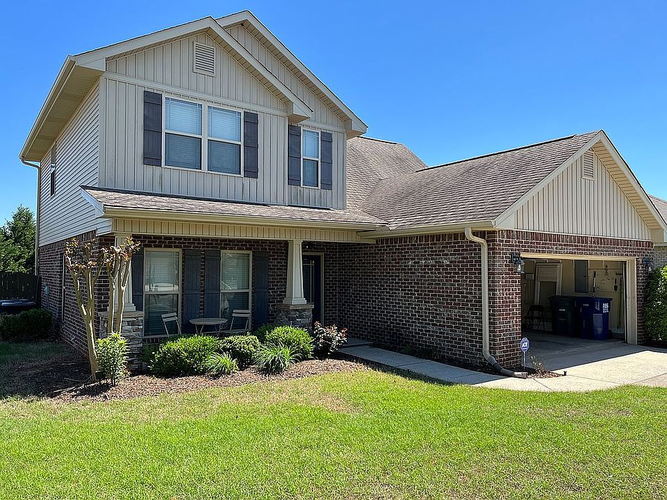 Beautiful family home with an open living room kitchen and dining room, includes the refrigerator and bar stools, a Master bedroom and Master bath and 1/2 bath all downstairs. There’s two bedrooms upstairs that shares a Jack and Jill bath, a huge bonus room and the laundry room can also be found upstairs with washer and dryer included. A fenced in back yard, 2 car garage, a screened in back patio with also an open patio. You will also have access to the community club house, fitness center, and swimming pool! House is located very close to the airport and Redstone Arsenal gate 7..