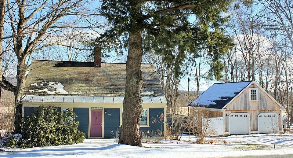 This 1760 Antique Cape in beautiful South Amherst will not disappoint! You'll enjoy the best of both worlds... With modern conveniences such as replacement windows, a newly constructed 2 car garage, and 1st floor laundry, but also history you can feel as you walk through with original wide pine floors, wainscoting, and a Rumford fireplace with a brick oven. The current owners have loved this home and cared for it over the past 10 years with many improvements! In 2015 the rear roof was replaced and a new boiler and hot water tank were added. The flexible floor plan provides a 1st floor bedroom and a full bath on each level. The unique 1.79 acre lot is large and abuts conservation land with sweeping views of the Pelham Hills that must be seen in person to be appreciated. You'll enjoy the spectacular year round vista as you garden or tend your chickens on this one of a kind property! Just a short walk to the South Amherst common and the library, and less than a mile to the rail trail.