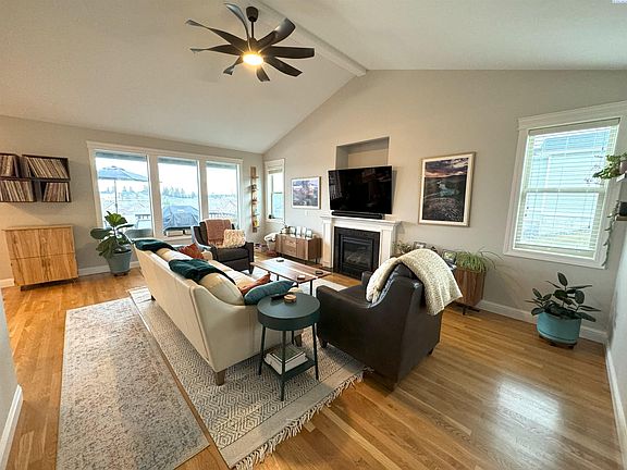 MLS# 272855 MLS# 4 bedrooms, 3.5 bath on a quiet street and great view of Sunnyside hill has so much to offer! This home features an open concept for the living, dining and kitchen area with beautiful new flooring. The kitchen boasts granite counter tops, stainless steel appliances with new oven and refrigerator. Adjoining dining room has access to a nicely sized deck with a view overlooking the fenced in backyard. Living room has a cozy fireplace, high ceilings and lots of natural light. Upstairs you will find the large primary bedroom with a walk-in closet and it's own private bath with separate shower and bath tub. Two other bedrooms, a full bath and laundry room make for convenience. Downstairs features a good size family room and workout area with a walkout to the large backyard that has amazing entertainment space and gardening area. Another full bath and smaller room that would make a great bedroom or office. Don't miss out on this tastefully updated clean, cozy, beautiful home!