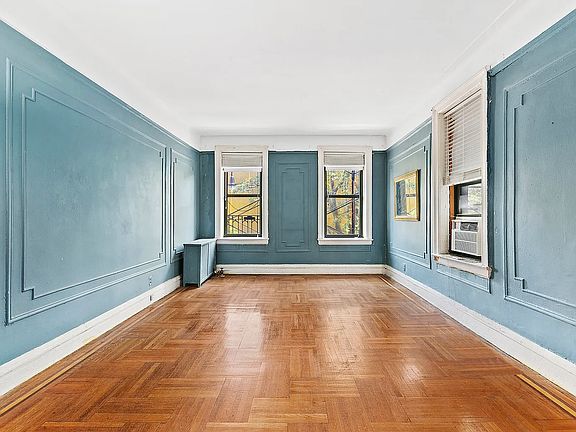 This enormous one-bedroom unit with a large formal dining room is converted into a two-bedroom, one-bath apartment in the beautiful sought-after Westminster Hall Coop building in Crown Heights.
