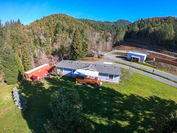 Amazing opportunity to live on 60 beautiful acres in lovely Sunny Valley. Super clean 1998 Manufactured home that is a spacious 1848 sq feet, and offers 3 bed and 2 bathrooms with 2 new covered porches. There is also an additional 604 sq ft updated studio, 2 wells, and a large 24X36 shop/Ag building, mature Apple, Cherry, and Pear trees and Grapes. Six 80 foot Organic raised beds. 7 permitted 2500 gal holding tanks. Well taken care of property, newer roofs on both, and backs up to Public Lands. This listing consists of 2 parcels totaling the 60 acres. The main home and ADU rest on the 20 acres parcel, and an additional 40 acre parcel is adjacent, and offers hiking, horse, or motorcycle trails. Schedule your tour today.