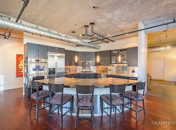 This 1920's exposed brick and concrete industrial loft is West Loop's most desirable building.4200sf combined corner unit that has elegance, style and drama.The original developer's personal home, so designed to live like a single family with the spacious floor plan, high ceilings, huge wrap around windows that drench the home in light, split bedroom layouts and the master bedroom suite is perfectly appointed.The South facing master suite is spacious with walk in closet, dual vanity and oversized marble spa shower. The open layout design makes this home ideal for entertaining and the views of the city are fantastic.The chef's kitchen comes with expansive island, ample amount of cabinets, stainless steel appliances, concrete counter-tops and is complimented by the large dining room and 36' private balcony off living room.One of the two ensuite bedrooms has an additional 20' balcony perfect for an office.Tons of storage and a 300 bottle climate controlled wine room. 2 heated garage spots