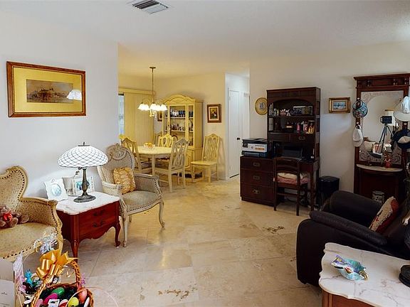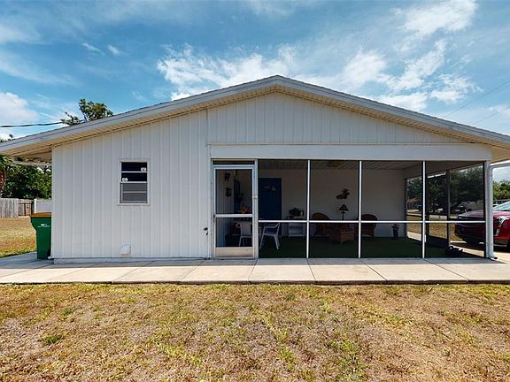 Port Charlotte charmer! With beautiful updates including gorgeous Travertine marble flooring, newer appliances and fixtures, this immaculate home has been lovingly maintained! A pass-through from the kitchen adds extra convenience to the large family room! Excellent for entertaining! The spacious back yard would be perfect for a future pool! The large shed has electricity and offers plenty of room for extra storage or use as a workshop. A screened carport is perfect for enjoying the beautiful Florida weather. It could easily be converted back for parking. The electric panel box has been updated for peace-of-mind and a recent 4-point inspection has been completed. This home is in pristine, move-in-condition!