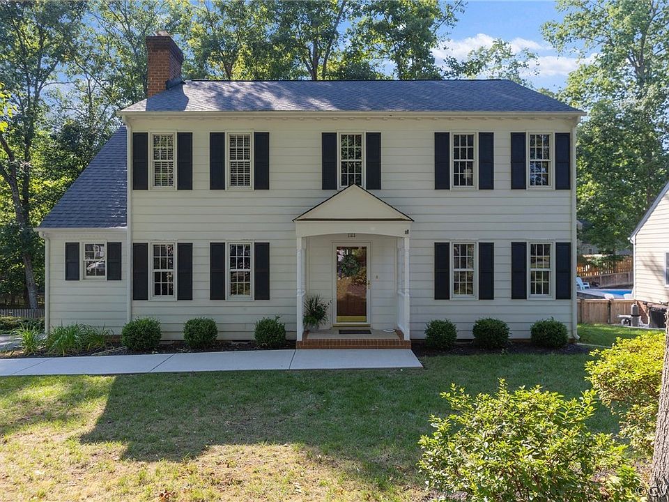 Walton Park beauty with loads of updates and renovations to make the move an easy transition. This traditional 2 story home welcomes you with hardwood floors and traditional moldings. Solid construction is felt throughout the home. The kitchen has been beautifully updated with vinyl floors, granite counters, stainless steel appliances, updated hardware and under cabinet lighting. It is open to a spacious breakfast area that overlooks the pretty back yard through a large bay window. The family room has hardwood floors and built in bookcases. Enjoy the wood burning fireplace in the fall and doors to the deck to enjoy a cup of coffee or entertaining when it's warm. Spend time gathering of friends or family in the dining room with hardwood floors or relax in the living room, an opportunity here for a first floor office, play room or secondary room to relax. The second level hosts four bedrooms. Both the en-suite bath in the primary and the hall bath have been fully renovated. The primary bedroom has new carpet and a walk in closet. The bath is light and bright, two adult height vanities, walk in shower and updated througout. The hall bath boasts new floors, lighting, toilet, fixtures and a newly glazed tile tub/shower. There is a walk up attic off bedroom 3 for additional storage. Outside you have a newer deck, encapsulated crawl space and shed for storage. A spacious park like yard welcomes you to play or relax. Walton Park has so many fun activities for neighbors, with NO HOA! Tacky light tour, food trucks, holiday celebrations..the list goes on and on. You can also join the pool for summer fun. Convenient to Rout 288 and Powhite, shopping, dining, groceries and medical centers (all within 5-10 minutes), all in the heard of Midlothian!