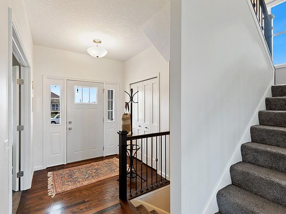 Beautifully appointed stately 2 stories in sought after Clover Springs Addition. 4 bedrooms on ONE LEVEL including a large, private master suite with ceramic shower and dual vanities. High-end custom painted cabinetry with high-end hardware, Tile Backsplash, Large Kitchen Pantry, Stainless Appliances, Granite Countertops, Gas Range, Custom Woodwork Throughout, Main floor office with built-ins and french doors, Updated Light fixtures throughout, custom locker bay in the mudroom, Stone surrounds the gas fireplace, Real hardwood floors, Upper-Level Laundry with Separate Washtub, Walkout Lower Level with enough space for additional Bedroom, Bathroom, and Family Room. Lot backs up to wetlands with plenty of yard space for the playground or garden. This home is ABSOLUTELY STUNNING!!