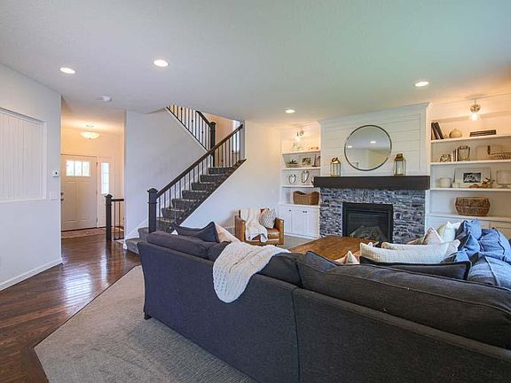 Impressive open concept 2-story, 4 bed (on one level), 3 bath with double vanity and tile shower master suite. Designer kitchen with custom painted cabinetry, high end hardware and lighting, hand glazed tile backsplash, granite countertops, RO filter, floating shelves, stainless appliances, huge walk-in pantry and REAL solid oak hardwood flooring. Large living room with stone fireplace with flanking built-ins, main floor office, custom built-ins and woodwork throughout home. Huge mudroom complete with locker system and walk-in closet. Walk out lower level ready to finish with room to add additional bathroom, bedroom and family room for instant equity. Lot overlooks pond with plenty of space for playset, sauna or shed.