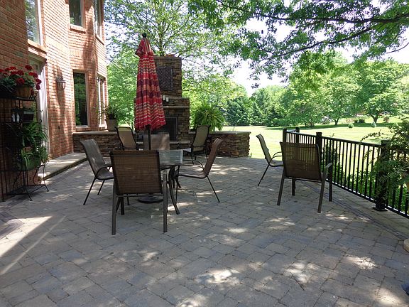 Enjoy living on a premier Cul de Sac with 1.8 acres. Welcome guests in the large foyer with a formal circular staircase. The entry leads into a open floor plan flanked with architectural columns, and floor to ceiling windows. The great room has built in cabinetry, gas fireplace, and French doors leading to the back patio. The open working kitchen has a large granite island, upscale appliances, working desk area and rear staircase to the second floor. The sunken living/music room and dining room have hardwood floors, large windows, and crown molding. The executive style office has custom cherry cabinetry and overlooks the back of the property. The first floor is finished with a laundry room and two 1/2 baths.Relax in the Master bedroom with a vaulted ceiling, wall of windows, and large bath with walk in closet. Relax with family and friends on the stunning back stone patio that stretches the length of the home and has a wood burning stone fireplace and outdoor kitchen.