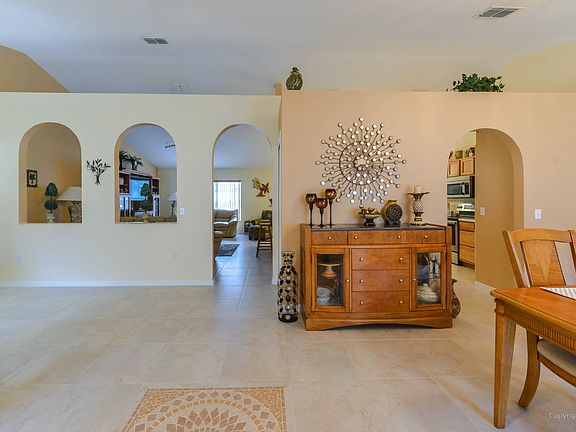 This fantastic home has room for everyone. Great landscaping greets you walking up to the front door. Inside you will find an elegant floorplan with the formal living and dining room at the start of the home. Large windows let in calming natural light and a cathedral ceiling above really opens up the space. Large tile floors run through all the living and wet areas of the home. Through the arched doorway and pass through windows is the bonus family room. The kitchen holds everything available to create fantastic meals. With two closet pantries, a center island with a prep sink, and loads of cabinets surrounding what more do you need? Great space in all of the guest bedrooms along with a ceiling fan above. Lovely wood laminate flooring in all of the bedrooms. The master bedroom is big enough to accommodate large furniture and provides two walk-in closets. A garden tub in the master bath along with a large vanity and walk-in shower. The colorful pavers bring life to the relaxing lanai. The waterfall is a beautiful touch to the large inground pool. Many memories to be made in this wonderful home. Come view today!