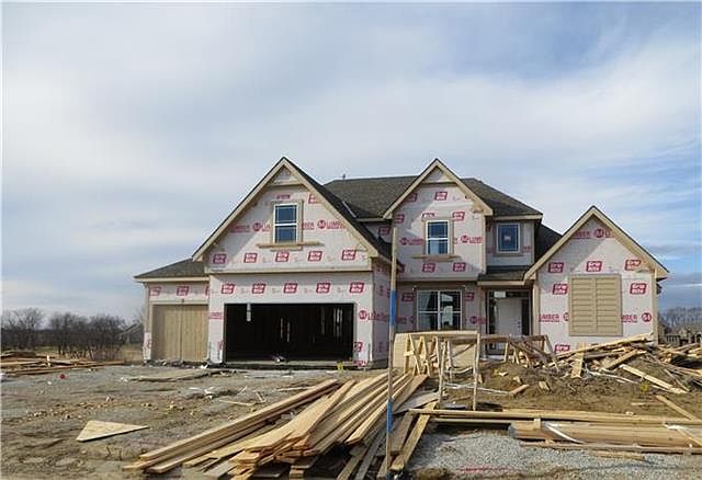 McFarland's Fabulous Marisa Grand is back and overlooks the golf course! This 1.5 story home has everything! Beautiful entry w/ formal dining & great room w/ 2 story windows! Kitchen & Hearthroom are great for entertaining w/ island, dble ovens, stainless appl, granite, fireplace & walks out to covered patio. Amazing walk-in pantry/desk area & laundry. Main floor master walk-in closet, 2 vanities w/ custom cabinets, tub & walk-in shower. Upstairs is rounded out w/ 3 bdrms, 2 ba & loft overlooking the great room Woodneath Farms is a great Hunt Midwest Community! Amenities include: competition sized pool, playground, walking trails, tennis court, picnic area & more! Taxes & room sizes are estimated. Photos are simulated. See finished model at 8608 NE 90th Street. Call Sherri for more info: 816-781-7925