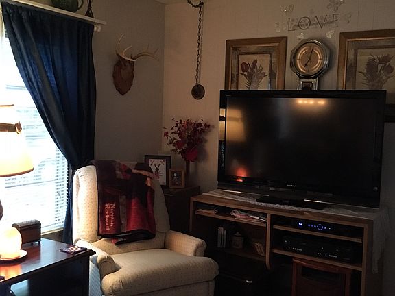 This 12X60 mobile home is move in ready, lovingly cared for and decorated, all that is needed is to bring your toothbrush, towels and linens are included. Many improvements completed, new vinyl and toilet in guest bath, new kitchen sink and faucet, new shower in main bath, new blinds and carpet in enclosed Florida room, new windows in kitchen dining area, new carpet in bedrooms. The storage shed has washer and dryer, roof over, central air, electric forced air furnace. Here is a partial list of contents: Stove, refrigerator, dining set, pots & pans, dishes, silverware, love seat, recliner, end table's, TV's, queen bed in master bedroom with built in closets and dresser, guest bedroom has full bed, built in closet and dresser, and much much more. The mobile home is located in Singing Forest Adult (55+) Mobile Home Park. Park rent is $250.00 per month which includes sewer and water, yard debris. There is recreational hall with lots of activity's if you choose. Asking $10,000 OBO. The park does a back ground check on all new owners at the cost of $100.00.