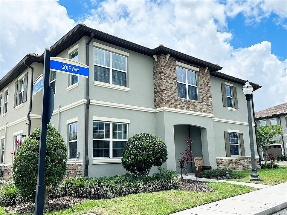 Seller may help with LOWER MORTGAGE PAYMENT for the first two or three years with a temporary buy down. CORNER UNIT! The luxurious, 3 bedrooms, 2.5 bathrooms and 2 car garage townhome is located at The Vistas, beautiful community within nationally-recognized ChampionGates golf course. Tile roof. First floor has an open floor plan with a gourmet kitchen featured with quartz countertop and stainless steel appliances, a half bathroom, and sliding doors to patio. The decent size loft located on second floor could be a game room or your office as you desire. Storage room in garage. Smart home devices and Security system are available. You will not only enjoy your residency, but also enjoy the community with a game room, a golf simulator, fitness room, wet sauna, and a luxurious, resort-style pool with heated spa. It is only 3 minutes walk from this home to ChampionsGate Golf Club and community pool and amenities. You can also have tons of fun at 5 minutes away ChampionsGate Vacation Resort Oasis Club for FREE as the Vistas residents. The community is located in a prime location just minutes away from Walt Disney World, the Omni Hotel and Resort, International Drive, I-4, and other exciting areas. Residents and visitors of the Vistas can play, eat, and shop all within minutes from their doorstep with so much to offer. HOA covers basic cable/internet/lawn maintenance.