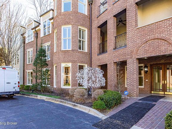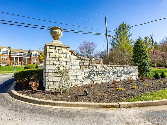 Gorgeous and immaculate 3 bedroom, 2.5 bath LUXURY first floor condo located in Harrods Creek Overlook. This stunning unit boasts an open floor plan with 10 foot ceilings and windows, a custom gourmet kitchen with an oversized island, living room with a gas fireplace and custom built ins, and a dining room that can easily fit a table for 12! The primary bedroom offers 2 custom built in walk-in closets, an en suite bath with dual sinks, a soaking tub and a separate shower. The large laundry room, the office/planning room with a built in desk and storage cubbies, a covered front patio, as well as a 524 sq/ft PRIVATE partially covered rear patio make this a spectacularly planned condo. Additional amenities include a completely secure building only accessible with a fob, a parking garage with two parking spaces, trash chute located off the patio, interior mailbox next to unit, and lots of beautiful green space. These exclusive units are rarely on the market, come see your new maintenance free, move in ready home today! Conveniently located 1 minute from the Gene Snyder!
