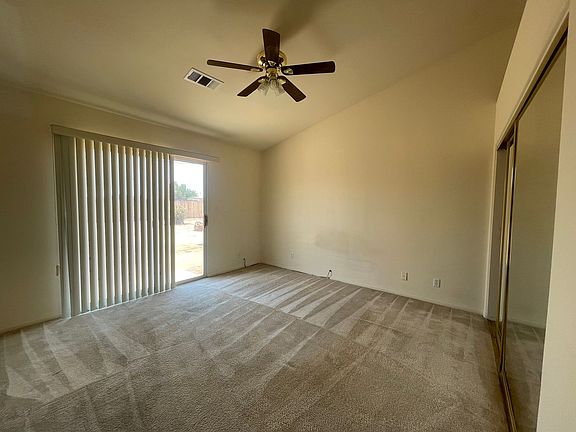 This custom-designed home offers comfort, functionality, and thoughtful features for everyday living. With 3 spacious bedrooms and 2 full bathrooms, this property is perfect for a variety of lifestyles. The primary suite includes its own private bathroom and sliding glass doors that open directly to the backyardideal for relaxation and privacy. Enjoy cozy evenings by the fireplace during the winter months. The kitchen, with its practical rectangular layout, provides ample cabinetry for storage and is conveniently connected to the attached two-car garagemaking unloading groceries quick and easy. The home features carpeted living areas and durable linoleum flooring in the kitchen. Step outside to a generous backyard, perfect for outdoor gatherings, play, or quiet retreat.