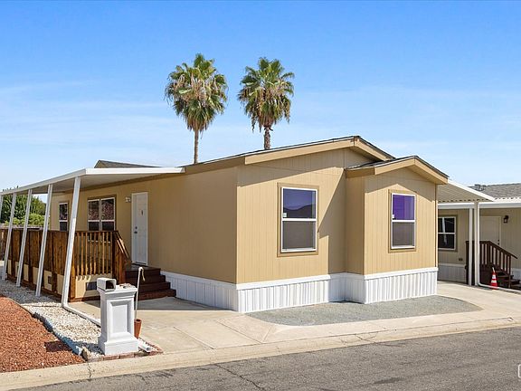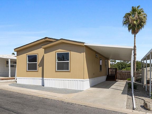 This brand new 2023 mobile home in a 55+ community is designed to offer you comfort, convenience,and style. With 3 bedrooms,2 bathrooms,and a spacious 1097 square feet of living space,it's the ideal place to call your own.Stay cool in the summer and cozy in the winter with central A/C and central heating, ensuring year-round comfort for you and your family. Enjoy the benefits of modern living with new dual-pane windows that provide energy efficiency and a tranquil atmosphere.Protect your vehicle from the elements with a brand new carport,and savor those beautiful sunny days on your new front deck with a patio cover, perfect for outdoor gatherings and relaxation.Inside, you'll find vinyl flooring in the kitchen and bathrooms,offering durability and easy maintenance,while the new carpeting in the bedrooms and living room adds a touch of warmth and comfort.Located in a vibrant adult community, experience the joys of low-stress living with one one of the lowest space rents in town!