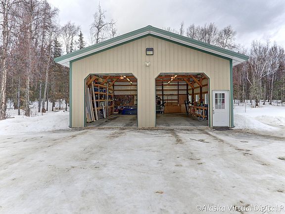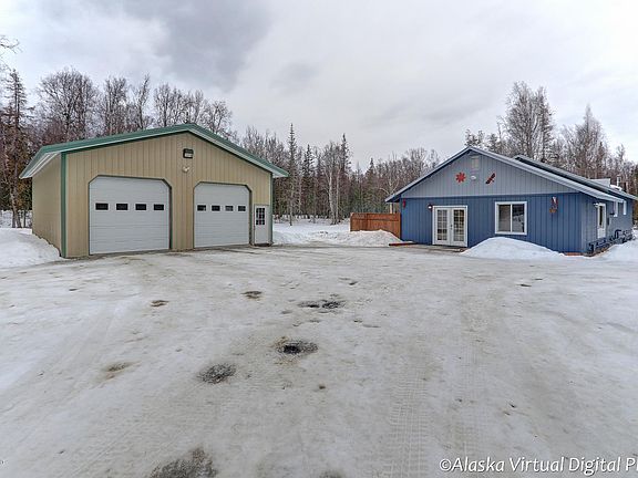 Completely remodeled home w/ heated 30'x40' SHOP on 3.8 acre private lot near Hatcher's Pass. Open kitchen/living w/vaulted ceilings plus a dining room & pantry! Granite countertops, SS appliances, stone fireplace. 3 oversized bedrooms & office. Lg deck w/hot tub, covered porch, arctic entry.Wilderness right outside your door with trails & mountain access nearby!Horses(3) & Chickens OK!