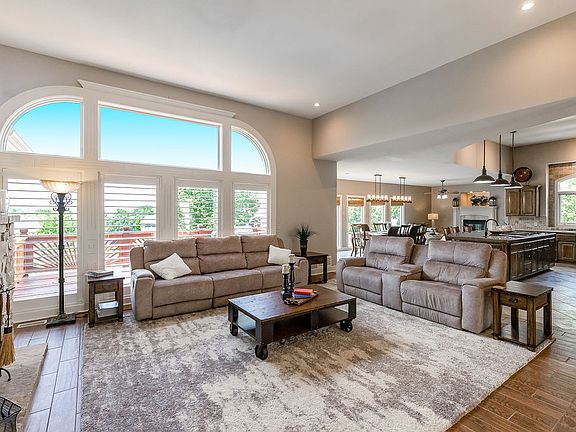 This Custom Open Concept is what You've Been Waiting For! Main Level Boasts Tile Floors, Lge Kitchen w/Oversized Island, Eating Area & Hearth, Stunning Living Room w/8x12 Rock Fireplace & Tons of Natural Lighting, Master Suite has it's Own Wing of the House w/ Fireplace, Room for Sitting Area, Large His/Hers Walk In Closets & Gorgeous Bath! Walk Out Lower Level Features 4 Oversized Bedrooms, 2 Full Bathrooms, Bar Area w/Custom Pebble Floor & Dining Area, Lge Family Room w/See Thru Fireplace, Gym w/Cushion Floor...