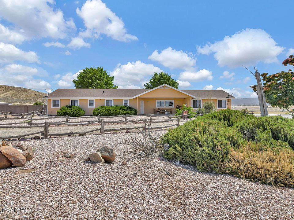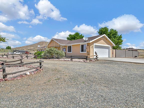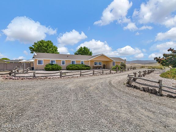 NEED ROOM to ROAM? This 6 acre property offers quiet country living close to all the amenities! Amazing sunsets, 360 degree views in coveted Coyote Crest / Prescott Ridge community. Love to garden? Enjoy your own 288 sq ft greenhouse with irrigation system and slab foundation. This well-maintained 3 BR, 2 BA home has gas/wood fireplace with custom wood mantle, upgraded kitchen with granite counters, radiant heating in floor, tankless H20 heater, 3400 gal buried H20 tank, fully fenced 6000 sq ft backyard, grape vines & apricot trees. Recent paint interior and exterior. RV parking w/hookups. Great location, one of the first homes in the neighborhood!