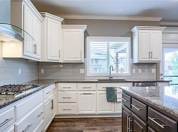 If you want new but don't want a new price check this one out that shows like a new model, both in condition and decor, plus so much more like the custom finished lower level and lots of custom upgrades when built! Solid oak floors throughout main level, custom cabinets, all granite counters, 8x5 kit island, Bosch S/S appliances featuring gas cooktop and convection oven, oversized covered patio with grill island in fenced yard, professional landscaping with concrete curbing & lots of trees. Everyone will love the lower level that features not only a beautiful wet bar, again granite counter, play house all kids will love, space for game or pool table but a projection TV with a 135" screen and wall/ceiling speakers! Ceiling of lower level has blown in insulation for both temperature comfort & noise control. There's also a true 6th bedroom and a full bath which is great for out of town company or if you need separate living quarters. There's also a main floor bedroom with walk-in closet, built-in bookcases and window seat with storage and access to full bath. These 2 make great offices, craft or play rooms as well! Master suite has spacious bedroom, HUGE (10x14) closet and luxury bath that has large walk-in shower with a rain shower water head. All bedrooms have private bath access, bedrooms 2 and 3 have walk-in closets. Convenient laundry adjoins the master bath. Other upgrades and features include - Kohler Alteo faucets, High efficiency furnace w/humidifier, on demand water heater, Reverse osmosis water filtration, HERS rated home, Pre wired for security, 8' garage doors with battery backup/smart openers, LED lighting throughout, iron spindles & designer carpet on stairways, main level fireplace pre-wired for TV & speakers, steel fence around backyard. From the moment you step onto the covered front porch that's actually deep enough use and through the front door you'll fall in love with the openness & all the natural light from all the windows!