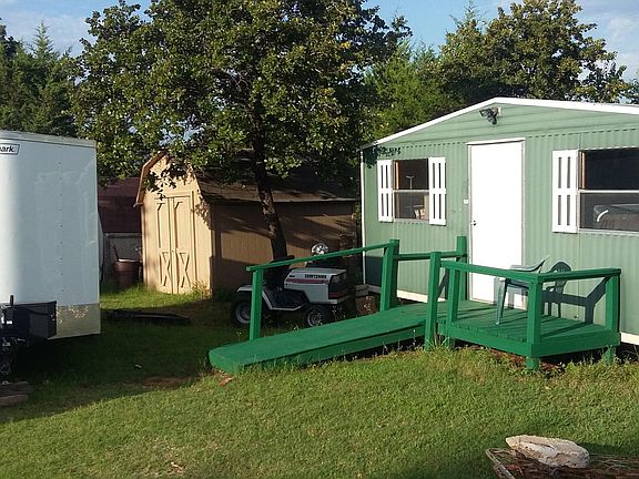 Very well-built 18 x 80, Solitaire mobile home, on 5 Acres ,with Renewal by Andersen Windows. 3 large bedrooms, large master closet and bath w/walk in shower. Tiled living room and kitchen. Wide hall way, large washroom and more. Storm shelter and multiple buildings. Well & septic. Mid-Del Schools, Schwartz Elementary, w/ busstop at end of road.