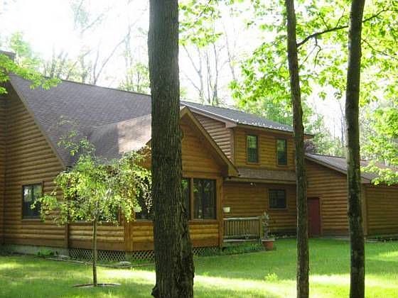 What A Great Sitting On This Three Bedroom Three Bathroom Log Home, Attached 2.5 Car Garage, Large Covered Deck Plus Additional Open Deck, Stone Fire PLace Plus Gas Stove In The Family Room, Sun Room, Walk-Out Finished Basement, 30'ft. x 40'ft. Pole Barn For Your Toys Plus Large Attached Workshop, Loft Area, Vaulted Ceiling With Tongue and Groove in Living Room, Beautiful Wooded Rolling 20 Acre Parcel With Mixed Hardwood and Pine, Walking Trails Thru-Out Property. Home Sits About 600 Feet O...
