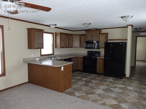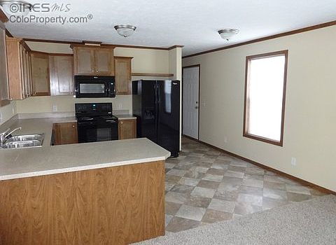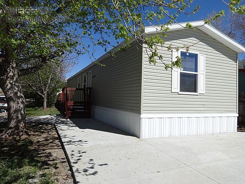 Rare gem: brand new 15x65 manufactured home by Champion, located in desirable SE Fort Collins, It has 3 beds, 2 baths, 3 parking spaces, all 4 black appliances. Never lived in. No huge monthly lot fee to pay at Mountain Range Shadows as you own the lot! Home has permanent foundations and title is purged so it can be financed with at little as 3.5% down with FHA or 5% for conventional. Corner lot, mature trees, 1 year home warranty by Highland Manufacturing.