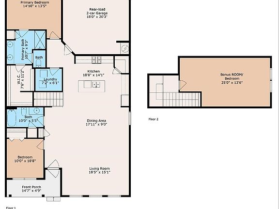 Upstairs, the versatile bonus room is perfect for a home office, rec room, or even a 3rd bedroom.