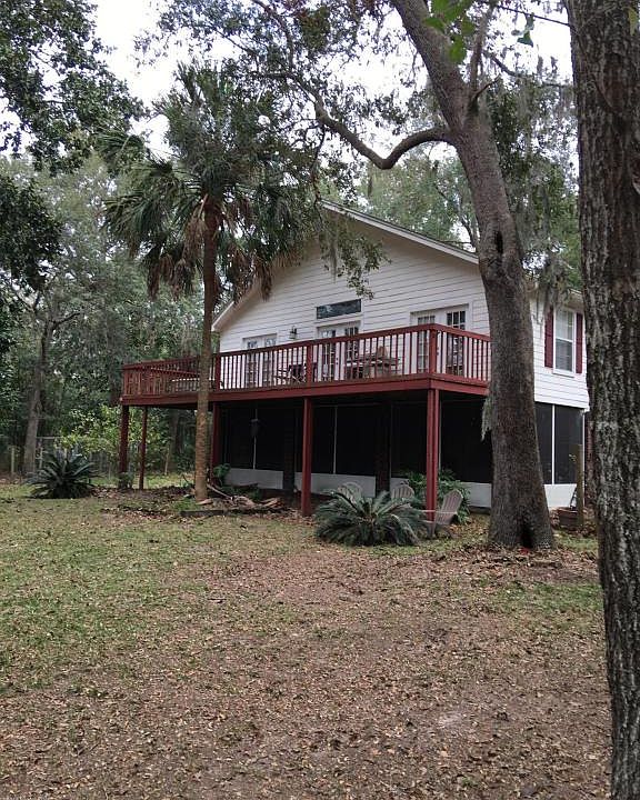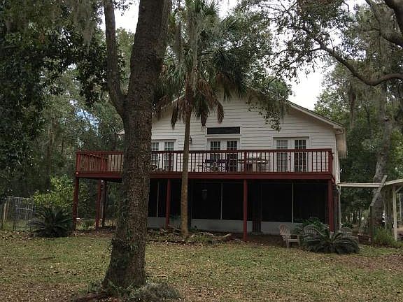 Beautiful Sunsets on the Nassau River. 2.07 acres with beautiful shade trees. There is a 2 story 3 Bedroom and 2 Bath home on the property.Home Needs Work but the kitchen has been updated with granite and stainless appliances. 2 bedrooms upstairs with kitchen and family room with large porch across the back. Down stairs 1 Bed, 1 Bath with another room for a possible office. A screened in porch across the bottom. Several carports on the property for cars or boat. Part of the yard has several fenced areas that was used as kennel, with that an A/C shed. Lots of possibility. Come check it out for yourself. Property being sold as is.