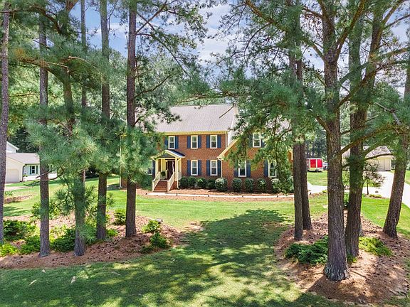 Southern Living Charm and just minutes from downtown Raleigh, NCSU, White Oak Shops, Costco, and easy access to I-40 and the new I-540. No city taxes! As you pull into the driveway, the curb appeal of this stately brick custom home with attached 2-car side load garage PLUS a 2-car detached garage/workshop sitting on almost 1 Acre is sure to impress! 2 Primary bedrooms, one on each floor, a perfect set up for in-laws or guests. The family room is open to the large kitchen with quartz counters, a Frigidaire down-draft cooktop, double ovens, Bosch dishwasher and spacious island is the perfect space for hosting big gatherings. The formal dining room will fit many guests for Thanksgiving dinner. Huge bonus room with additional private room that could be an office, craft or gaming room. 2 additional spacious bedrooms upstairs with walk-in closets. And don’t miss the Walk-up floored Attic that could also be future expandable space!