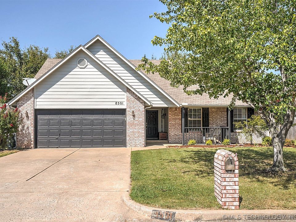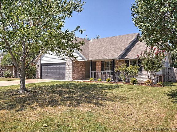 Extremely well kept and beautiful one story, 3 bedroom 2 bath, 2 car garage - Jenks Schools! UPDATES INCLUDE - New appliances - Microwave, dishwasher, gas stove, kitchen faucet, glass shower door in primary bath, toilets, decorative shiplap planks at front entrance, carpet in all bedrooms and freshly painted hall bath vanity. Lovely backyard tiered covered deck with arbor and patio lights. Granite countertops throughout and wood and tile in living, dining and kitchen areas. Wonderful access to everything Tulsa has to offer! Shopping, medical, highway, Library and so much more!
