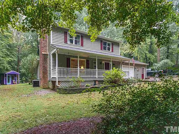 Custom built home w/Raleigh zip & Cary schools on 1.11 wooded acres! Home backs to Wake Cty greenspace & Crowder Park! 3 bed home has vaulted ceiling in master, custom tiled master shower, updated tile in main bath, wood burning fireplace w/full hearth & mantle in LR, rocking chair front porch, large rear deck! Kitchen has 3 pantries & loads of counter space plus butcher block island. Tons of storage. Wired 16x12 shed/workshop & children's playhouse convey! Chicken coop & fenced area for outdoor pets.