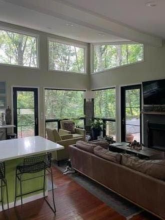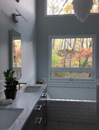 AVAILABLE NOV 1 - APRIL 30. This is a four to six month rental, dates flexible. Do you work in Chicago or South Bend, but prefer nature to city life? Experience the quiet healing power of Miller Beach, less than an hour's commute to Chicago or South Bend. This beautiful 3 Bed/2 Bath spacious, modern home offers a one-of-a kind immersion in natural fall and winter beauty, with soaring 15 foot windows overlooking a full acre of wooded dunes in a park-like setting less than two blocks from the beach. The only sounds you'll hear are birds, rustling leaves, and the waves of Lake Michigan. This fall and winter retreat is surrounded by the nation's newest national park to the east and west, and Lake Michigan to the north. Bring your hiking boots or snow skis: Miller Woods and Douglas Dunes- part of the nation's newest national park- offer groomed trails and cross country ski rentals, and their well-kept nature trails delight birdwatchers of all seasons. The fully furnished three bedroom 2 full bath home features a gas start wood burning fireplace, 15 ft. tall windows with a spectacular view, modern kitchen, open living space, stone fire pit under the trees, romantic Jacuzzi, two porches, walk out lower level family room with 80 inch smart tv, huge soaking tub, fantastic fall and winter light, stainless/ granite, WD, and all the modern amenities. Bedrooms include one king and two queen suites with comfortable mattresses and hotel quality linens. The main floor features two reclining chairs, two sofas and a dining table for 10. The family/media room has comfortable furniture and an 80" Television with surround sound. Check out the extensive art collection from mostly local artists. Miller Beach's two oldest restaurants (with great Lake perch, steaks, and chops!) are walkable- less than a block away! Bring the pups and let them run free through an acre of private woods. The home is in a very walkable section of Miller Beach. One block from two of the most iconic local restaurants and two blocks to the beach and beautiful walking trails! 4 to 6 Month sublet November 1 - April 30 Fully furnished Well loved dogs always welcome - dog door access to your 1 acre wooded lot! Absolutely no smoking in the house