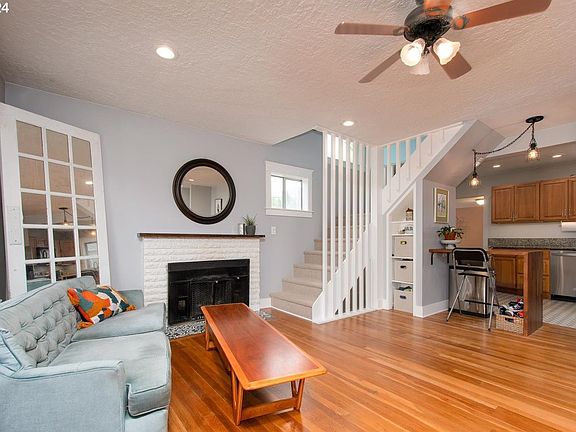 Nestled on a corner lot, this sweet mid-century boasts timeless appeal with modern comforts. Natural light floods every corner, showcasing the gorgeous refinished hardwoods and wood burning fireplace. Thoughtful remodel and new open design concept make this home live spacious and chic. Large family room off of kitchen has parquet floors and French doors to a patio that is perfect for BBQ's this summer! Some of the tasteful updates include: remodeled bathrooms with gorgeous tile work, finished attic space, new tile floor in kitchen, new breakfast bar, newer appliances, recessed lighting, all new plumbing, some new electrical, new on demand water heater. Stay comfortable year-round with forced air gas heating, and air conditioning. The oversized attached 2-car garage provides ample space for your vehicles and a workshop. The basement offers opportunities for generational living or ADU. You're just a stone's throw away from local gems like the Grotto, and a delicious stack of pancakes at Cameo Café. Conveniently located by I-205, PDX airport, public transportation, Rocky Butte, and the Roseway retail corridor on Sandy Blvd. Embrace the charm, comfort, and endless possibilities this home has to offer!
