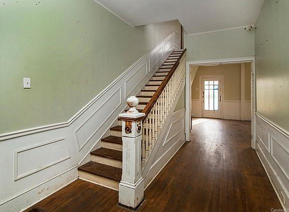 Colonial style home on an acre lot full of charm and character! Home features high ceilings, main floor bedroom, curved archway, original mantle...wood floors throughout, pretty moldings, and staircase. Needs work but could be a showplace! Outside, detached one car garage and original carriage house. Lots of possibilities! Near UNCC and future light rail. Property is "as-is" no repairs - cash or renovation loan only.