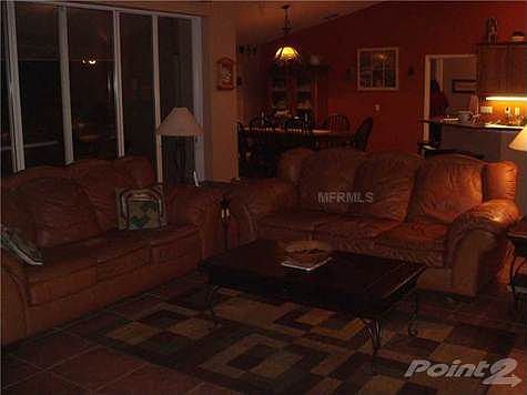 Holy Cow! The room sizes in this beauty are HUGE! Open the front door to an expansive tiled living room with vaulted ceilings, a dining area with its "bay of windows" and french doors to the lanai is large enough to seat 8-10+ and the kitchen, oh my! The kitchen is 17 x 13 and is fully equipped with wood cabinets and grey speckled corian counters, a breakfast bar and has a walk-in pantry with additional cabinets and a wash sink! Ladies, your dream! The master bedroom with vaulted ceiling is 15x20 with french doors to the screened lanai. It also has his and her walk-in closets and the master bath has his and her sinks on either side and a soaking tub in the middle of the bath...walk behind the tub and its a full walk-in shower that you can enter from either side. Beautiful! The other side of the home houses the other two bedroom and the 2nd bath. Now, the second bath is very roomy and has lots of additional floor space and holds a tub/shower combo. "Teens" could easily get ready for school in the mornings and not run into each other in this one. Both of the bedrooms have ample closet space. The home has a large screened lanai overlooking a wooded preserve (just beyond that is the river). There is a side-entry two car garage as well. All of this and more sits on a 1/2 acre of slightly deed restricted land in the River Oaks subdivision adjacent to the Sunnybreeze Community. The community itself offers 18 holes of regulation golf, a 9 hole par-3, a driving range, a fishing pier and public boat ramp. Wow!