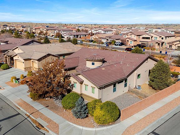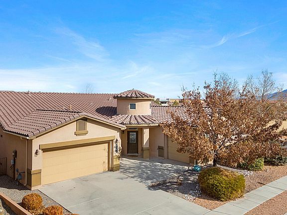 Welcome to 8501 Silk Tassel in Montecito Estates! This prime corner-lot home offers stunning mountain views from indoors or the oversized covered patio with an outdoor kiva fireplace. Conveniently across from the park and pool/clubhouse, it features a grand circular foyer, tile roof, and a split 3-car garage. Inside, enjoy upgraded tile, vinyl floors, and a gorgeous stone fireplace--no carpet! The executive kitchen boasts ample cabinets and granite counters. The open layout is perfect for active folks and you can still catch views of the Sandias at the same time! The spacious primary suite includes an innovative closet system, while each bedroom is generously sized for an office, gym, or theater. Giant pantry plus a tankless water heater and newer SS appliances! Don't miss this one!