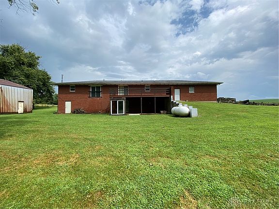 Secluded, private solid brick ranch with a full, dry walkout basement with two entrances! Situated on nearly 7 acres of 100% privacy with no neighbors in sight. Home has 200 amp service and 40 ft by 72 ft barn is wired for 220 service. House has well and septic system. The well is assisted with a NUVO water softener system and iron filter. The septic system was recently pumped out and serviced with new risers and baffles installed. Pressure tank for the well was replaced in 2019. Complete HVAC system was replaced end of 2021. 500 gallon propane tank just filled. Wood-burning stove located in basement. The unfinished basement is plumbed for an additional full bathroom. The 40-year roof, installed in 2003, is in excellent shape. The oversized 2-car garage has ductwork and floor drains for easy cleaning. If you are looking for privacy and a move-in ready home with great potential for additional finished living space, look no further. Same family has owned property since constructed and owned the previous home that was on the property. Brand new K-12 school recently built.