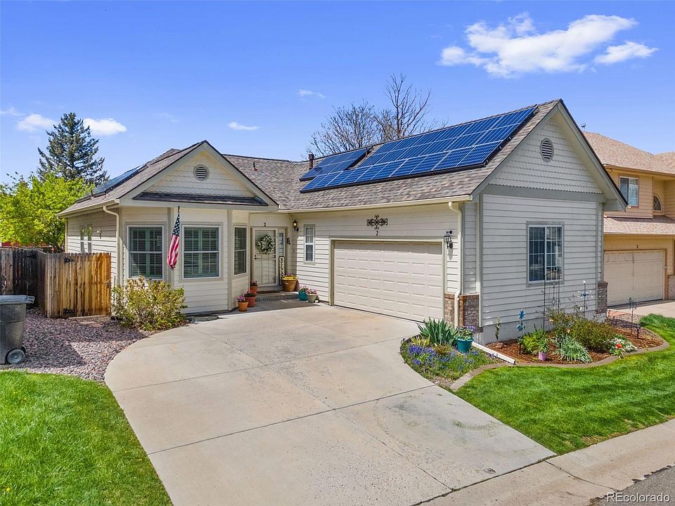 Live in a peaceful Denver neighborhood with a Littleton vibe in this stunning single-family home. This impeccably maintained home features an open floor plan with high vaulted ceilings. The kitchen has been upgraded with beautiful granite countertops that compliment the upgraded fireplace and hearth. Additional upgrades include a new furnace, new air conditioner, newer windows, new roof and plantation shutters throughout, ensuring comfort and energy efficiency. The main floor features the owner’s suite with vaulted ceiling, deep walk-in closet and five piece bathroom. On the main level you will also find two good-sized bedroom rooms, a large bathroom and laundry room with access to the garage. Calling all entertainers! The fully finished basement boasts a wet bar and spacious rec room – the ideal setting for hosting game nights or movie marathons. Have a hobby or craft project you enjoy? Solid surface flooring throughout the basement makes cleanup after creative projects a breeze. This level also features a beautiful full bathroom and a bedroom which are perfect for guests. Step outside and find your own private oasis. Relax on the back deck under the canopy of a mature shade tree. The beautifully landscaped yard, complete with garden boxes and a variety of perennials like lilacs is peaceful and serene. Location is key! This delightful property offers the best of both worlds: tranquility at home and easy access to the shops and restaurants along Wadsworth Blvd, including Southwest Plaza. Need a break? Explore the nearby walking trails or unwind at the Southwest Rec Center. Don't miss out on this exceptional opportunity to experience the perfect blend of modern comfort and peaceful ambiance.