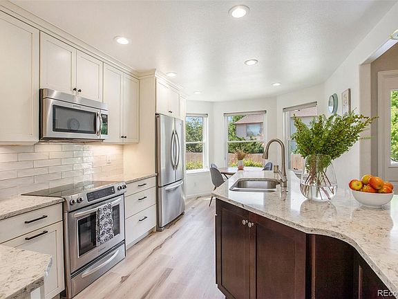 Wow! This stunning 4 bed, 4 bath, Single-Family Residence has a stylish open floor plan and a light/bright interior, providing creature comfort and livability. The inviting chef’s kitchen is complete with KitchenAid appliance suite, breakfast bar, quartz countertops, pantry, tile backsplash, abundant custom cabinetry, and a bay window eating space. Adjacent, is the spacious Dining & Family Room boasting soaring ceilings, a cozy fireplace, and access to your fabulous outdoor oasis featuring a large Trex deck for enjoying the beautiful Colorado weather year-round. Under-deck storage is just a bonus!!! New Class 4(!) Roof & Exterior Paint (‘22), Newer AC, water heater, designer lighting, and updated LVP flooring only add to this move-in ready gem. A wall of windows looks onto your sizeable back yard, perennial flowerbeds, garden area, and beyond to views of manicured park & tennis courts! The Primary Retreat boasts vaulted ceilings, a walk-in closet, and newly updated en-suite bath with dual vanities and luxurious soaking tub. The Finished Basement offers tons of add’l living space including a flexible Great Room with wet bar & surround sound speakers, a gym with treadmill incl. (aka 4th Bedroom...) and Another Full Bath! The Ring doorbell and your "Smart" thermostat, garage door opener, AND sprinkler controls, are modern conveniences you'll wonder how you ever lived without. Quick access to everything; including walking distance to local restaurants, Harriman Lake Park/nature preserve, Southwest Recreation Center, Clement Park, Southwest Plaza, Red Rocks, Costco AND Sam's Club, numerous trails, Chatfield Lake State Park, and so much more... Already outfitted with sump pump & Radon mitigation. The 2-car Attached Garage is even pre-wired for EV Charging! Priced for quick sale. Act fast, this one won’t last!!!