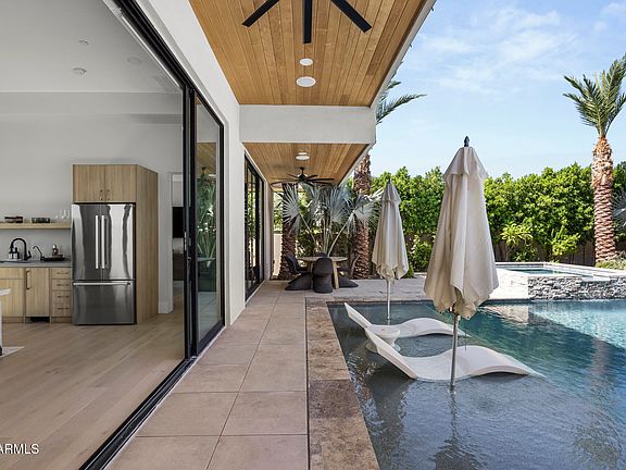 Luxury redefined in the heart of Scottsdale. This spectacular updated estate offers 6 bedrooms, 7 bathrooms, and a brand-new 774 sq/ft casita on a sprawling 34,991 sq/ft cul-de-sac lot with panoramic mountain views - complete with full AV smart home accessibility (see full list of features in ''Docs'' tab). Designed for elevated living, this home boasts a dramatic entry, a light-filled great room centered around a striking statement fireplace, and soaring 14' ceilings. The stunning gourmet kitchen is a chef's dream featuring dual islands, granite countertops, and custom designer cabinetry, including a custom hidden walk-in pantry. A climate-controlled wine wall also adds a touch of elegance for the discerning entertainer. Walls of glass and retractable doors create a seamless transition to the stunning resort-style backyard complete with a sparkling lap pool, spa, outdoor kitchen, fire pit, sport court, and expansive entertaining spaces. A newly added home gym equipped with a spa room provides a private wellness escape, while the sleek family room with floor-to-ceiling sliders and a modern fireplace perfectly captures Arizona indoor / outdoor living. Additionally, 4-car garage completes this exceptional property. From luxury amenities to timeless design, this one-of-a-kind desert retreat is truly an entertainer's paradise.