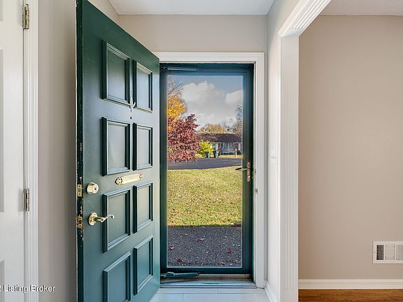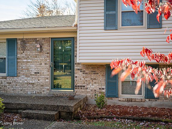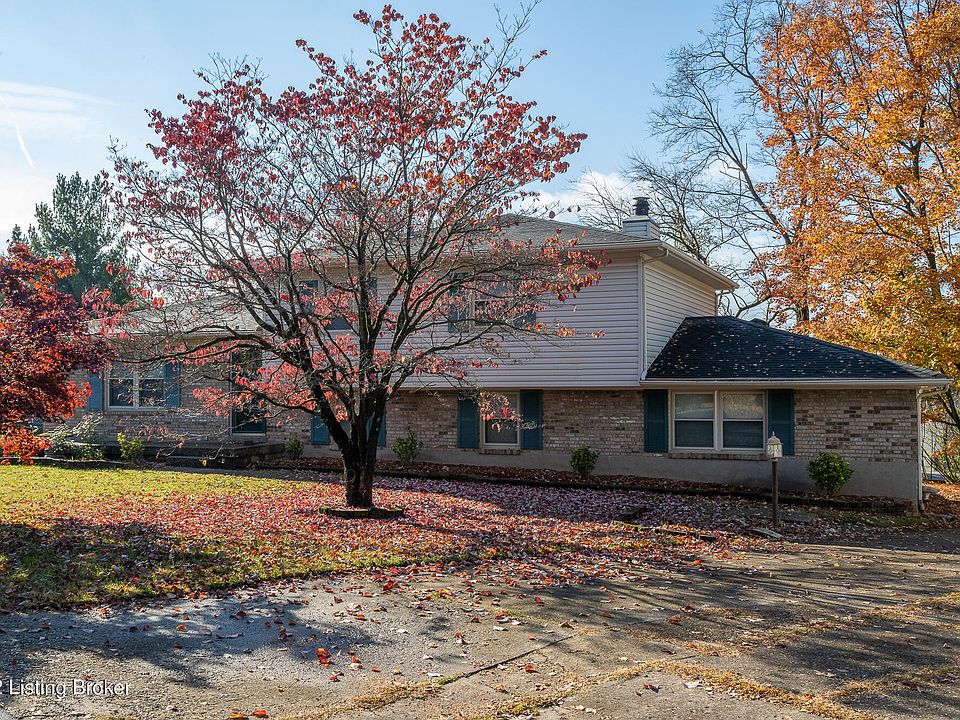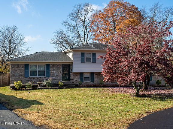 Nestled down a private cul-de-sac adorned with mature trees in the Bronzewing Farms neighborhood, this 4-bedroom, 3-bathroom home with over 2,000 finished square feet checks all the boxes. The foyer greets you inside with fresh neutral paint you'll find carried throughout the home. Natural light adorns the spacious front living room equipped with beautiful laminate wood flooring. The sprawling eat-in kitchen has been custom designed with gorgeous cherry cabinetry featuring soft-close hinges/slides with pull out shelving, granite countertops, tile backsplash and crisp white appliances. The kitchen overlooks the lower level family room embellished with ceiling beams, laminate wood flooring, a wood burning fireplace with a neutral brick surround and a built-in bookcase. The lower level also includes one of the four bedrooms with double closets, a handsome half bathroom with a beautiful updated vanity and the entrance to the unfinished basement with potential to easily add finished square footage if desired. The additional bedrooms are located on the second floor which features brand new carpet throughout. The primary suite offers abundant closet space with one of the two closets being a walk-in and a private primary bathroom. The French doors in the family room lead to the modern back patio and fully fenced in yard. Additional features of the property include a 2-car rear entry garage and storage shed. All this and so much more in the highly sought after Jeffersontown location convenient to shopping, eateries and entertainment. Call today to schedule a private showing!