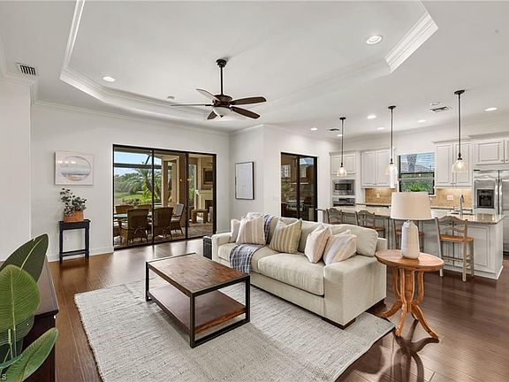 FINAL AVAILABILITY- DEC '25 & APRIL '26. Beautiful 3+Den, 4-bath single-family home in the gated community of "Esplanade at Hacienda Lakes" in South Naples. Nestled on a spacious .19-acre lot, this home offers a blend of indoor charm and outdoor luxury, all with tranquil lake views and coveted Southern exposure. The open-concept living space was perfectly designed for both relaxation and entertaining. The gourmet kitchen features a large island, dual sinks and natural gas cooking, making meal prep a breeze. Thoughtfully designed with privacy in mind, the bedrooms are strategically spaced, offering a comfortable retreat for guests or family. The real showstopper? The expansive outdoor oasis! Imagine evenings by the outdoor fireplace, hosting gatherings with a large outdoor kitchen and bar, or unwinding in the heated pool and spa with a serene lakefront setting. With the added convenience of an outdoor bathroom and shower, this space is as functional as it gets. This vacation rental is TURNKEY with everything one may need to enjoy a hassle-free getaway! Beyond the home, Esplanade at Hacienda Lakes is an amenity-rich community that enhances every aspect of resort-style living. Residents enjoy a resort-style pool and spa, a billiards room, a modern clubhouse and business center, pickleball and tennis courts, a fitness center with a stretching room, a dog park, and more. Conveniently located just minutes from dining, shopping, grocery stores, and gas stations, and only 20 minutes to downtown Naples, 5th Avenue, and the beautiful Gulf beaches.
