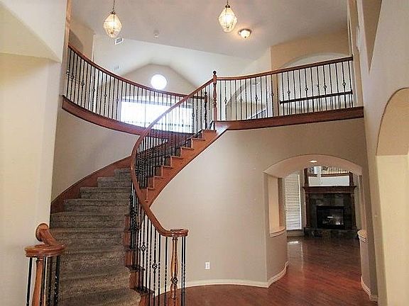 Back on Market at updated price! Beautiful 2-story entry and circular staircase as you enter this Waterview subdivision home! Formal living and dining rooms flank entry; Large living room has soaring ceiling and double set of windows flanking fireplace with gas logs; kitchen with island is open to breakfast area and homework center and pass-through window to living; Master bedroom with double-sided fireplace to master bath located downstairs along with one secondary bedroom that could also be office; Three bedrooms, two baths, media room with wet bar and 3rd living area upstairs; Large covered patio overlooks inground pool with attached spa; House is being sold AS IS;