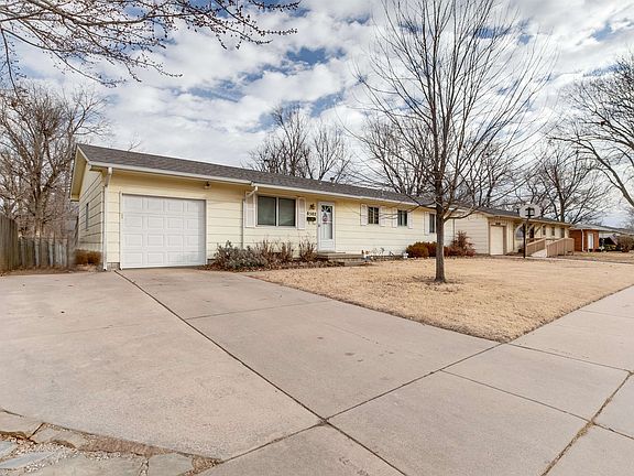 Welcome home to this charming ranch in West Wichita! The character shines throughout from the cozy kitchen to the basement theatre with surround sound! Enjoy the fully applianced kitchen with movable island & hanging pot rack that looks into the formal dining room. The fully fenced backyard features a spacious patio with raised beds & garden shed, as well as additional parking on the side of the garage! The basement showcases the laundry room off the bottom of the stairs that come with washer & dryer, a bonus room to make what you want, a family rec area, storage and most of all the home theatre, where you get to keep the movie themed decor! Come tour this charming ranch and make this house your home today!